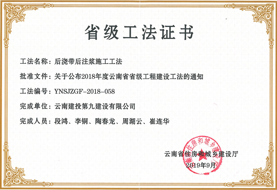 最新工法證書(shū)